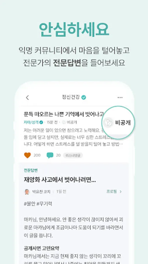 The mind cafe community is guaranteed anonymity. Feel free to confide in any concerns and share warm comfort and sympathy. You can also find expert answers from experts in community story articles.