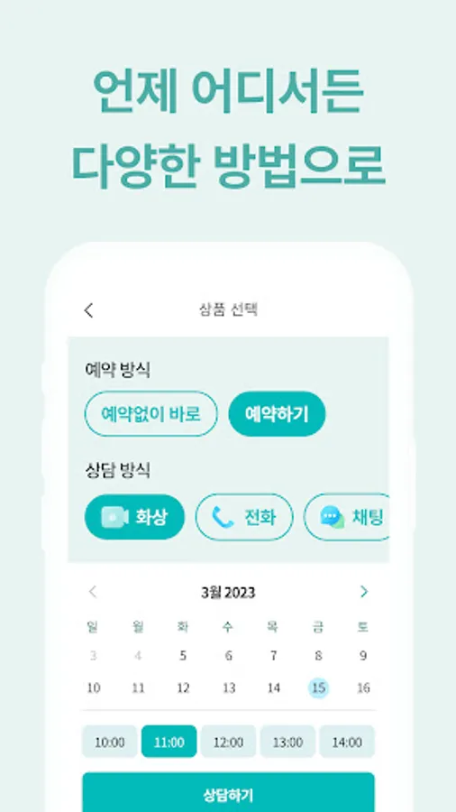 Conduct non-face-to-face psychological counseling and coaching at the desired time and space. You can meet at a price about 70% cheaper than face-to-face psychological counseling and coaching.