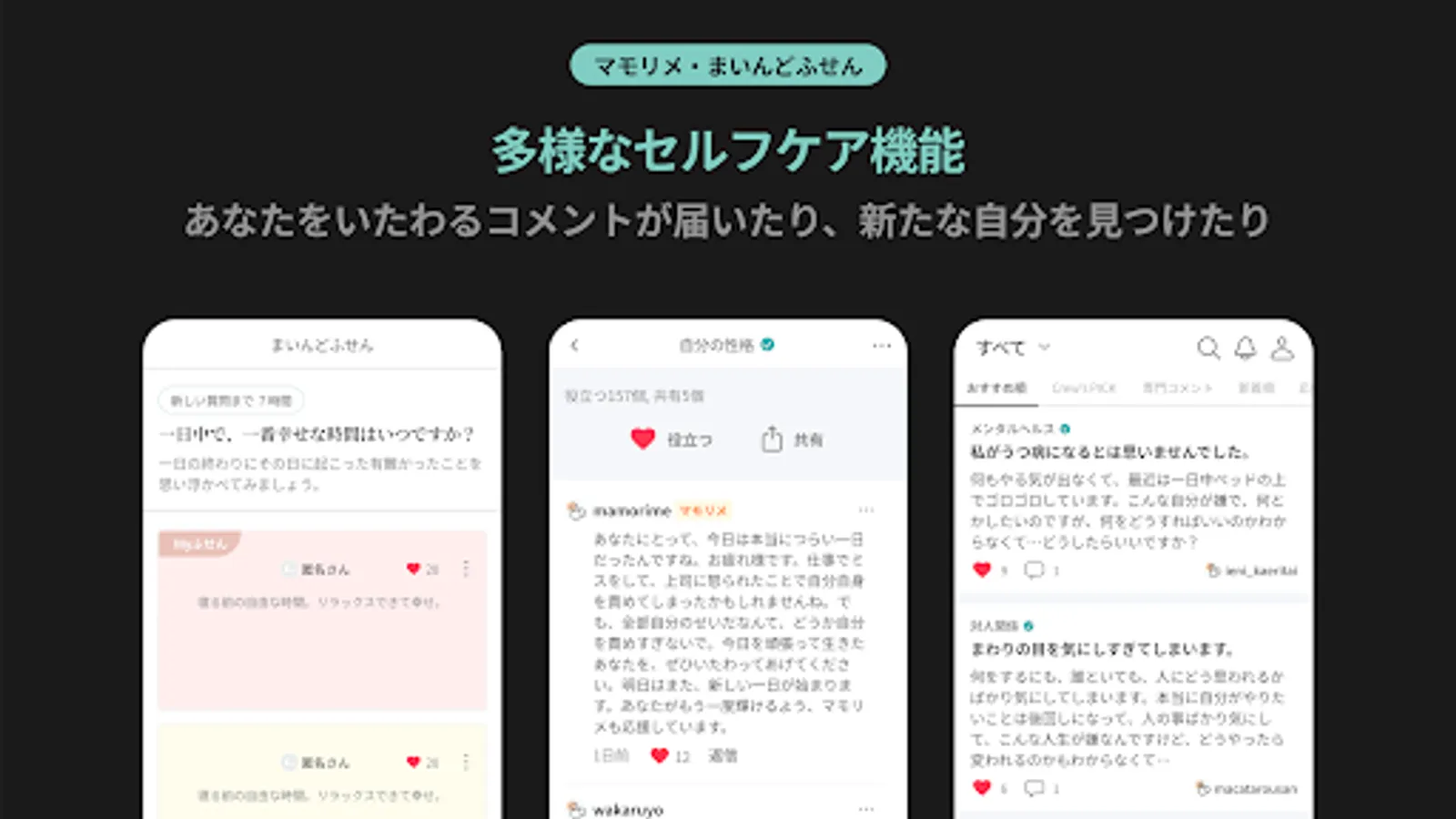 At Mind Cafe, there is a fairy "Mamorime" who is close to your feelings. Mamorime will appear out of nowhere and quietly leave a letter for your concerns. The feelings you want to be understood, the words you want to say, the advice you want to hear, Mamorime will deliver your “I wanted you to do” in a letter. There is someone here who cares for you.