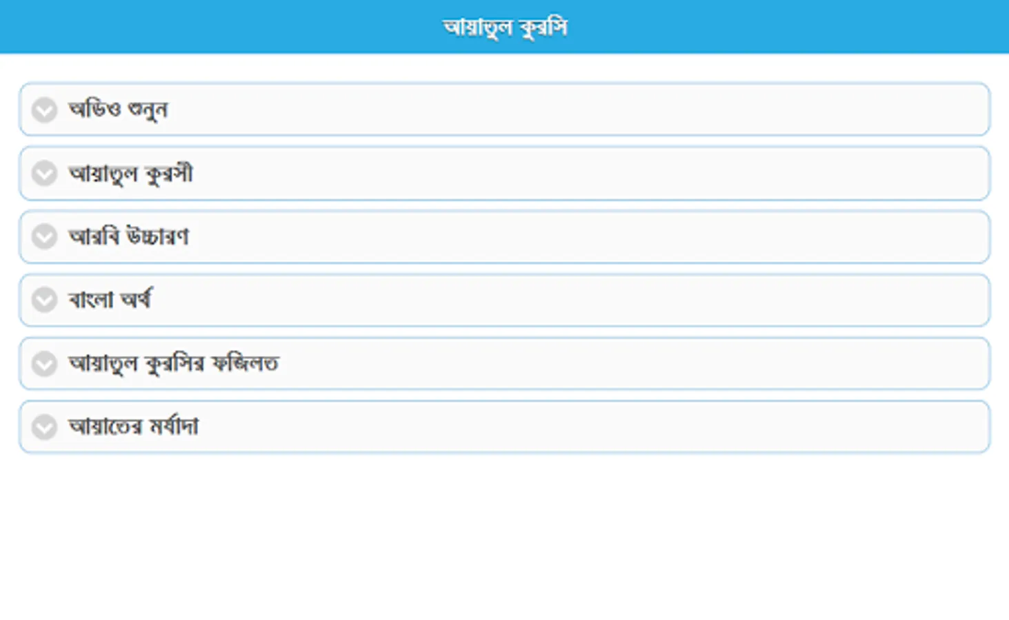 Muslims, though Ayatul Quraishi does not know how many such people are not less. Many of us do not give importance to Ayat al-Kursey. But its verses have special dignity and virtue. So for those who do not know or are looking for Ayatul Kursi this app. Where you will find Bengali and Arabic accents with translation audio and the grace and dignity of Ayatul Kursi.