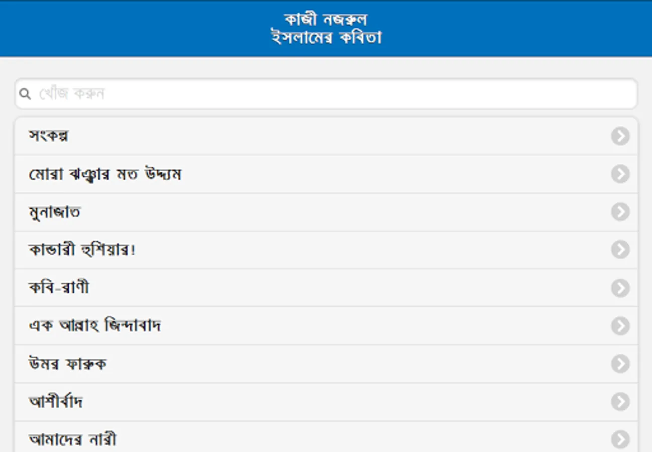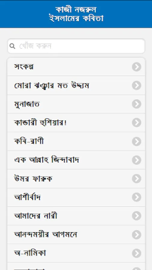 So this app has been arranged with a collection of poems by Kazi Narjul Islam. One of the most popular poems of Kazi Nazrul Islam.
