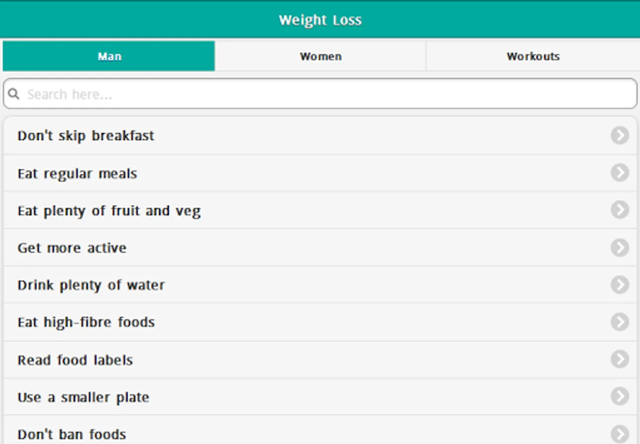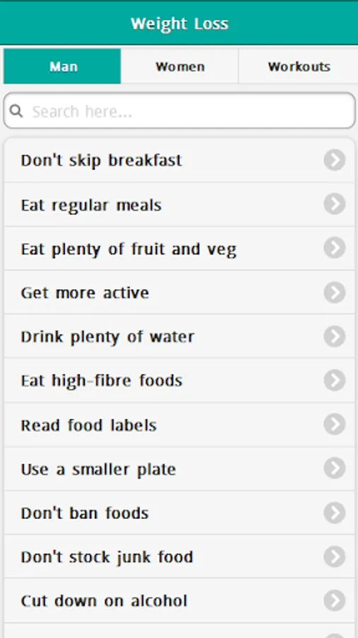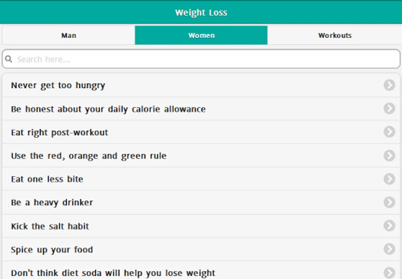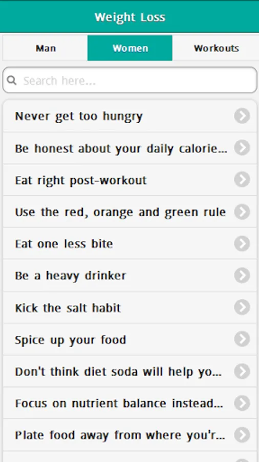 Weight Loss Tips & Tricks Application Features: