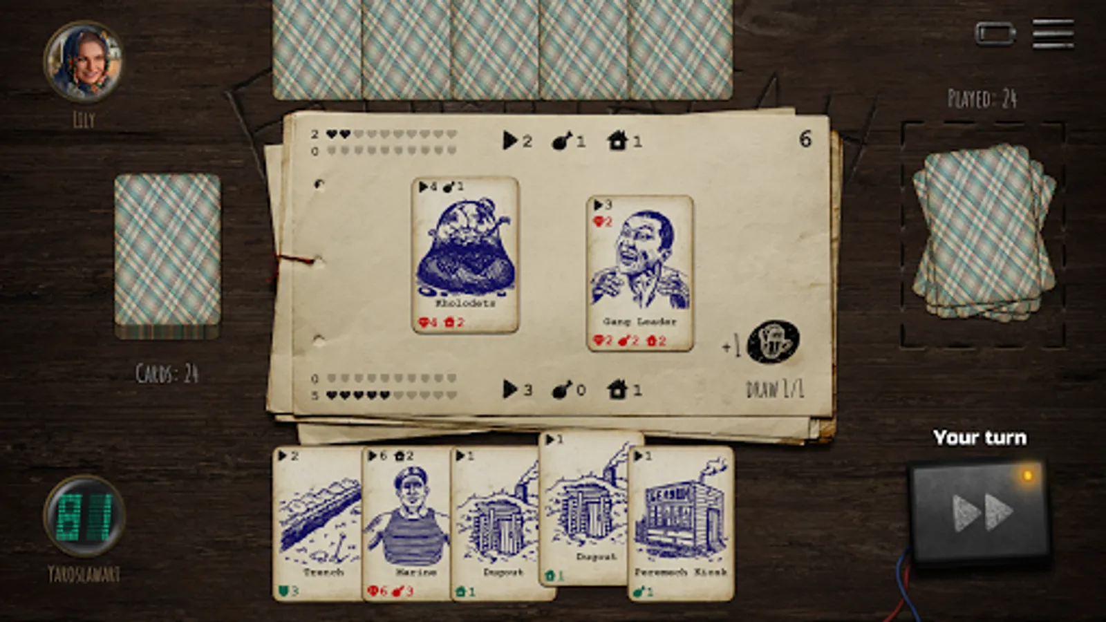 Bombagun - is a competitive card game set in the immersive post-apocalyptic universe of ATOM RPG. The game features a simple yet intricate rule set, original card designs and NO pay-to-win card collection elements or loot boxes! All players are dealt from the same deck, so only your own strategy, tactics, wits and luck decide whether you win or lose!
