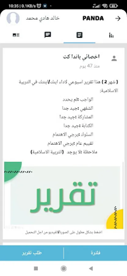 Through this feature, the guardian can communicate directly and immediately with the specialist for each of his sons registered in the system, by sending and receiving messages between them. The application and the guardian can communicate with each specialist separately.