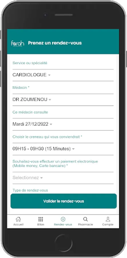 It allows you to make appointments online with your doctor. After making your appointment, you can pay your bill in advance via mobile money or VISA.