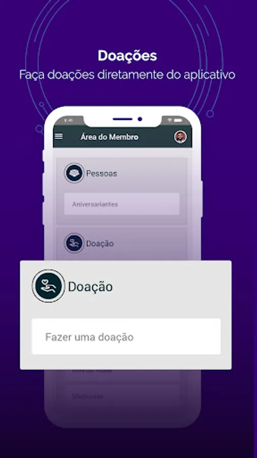 Each member or visitor can update your profile so that the church always have your updated data and perform monthly donations with credit card or ticket!