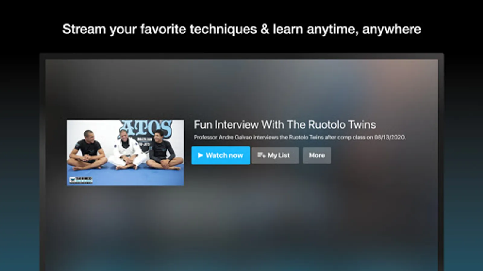 To access all features and content you can subscribe to Atos BJJ On Demand on a monthly or yearly basis with an auto-renewing subscription right inside the app.* Pricing can vary by region and will be confirmed before purchase in the app. In app subscriptions will automatically renew at the end of their cycle.