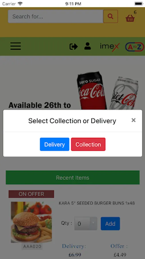 You can place your orders for collection or delivery from the same app. It's clever that all your previous orders show up first soon as you log in. You also have your favourites just after recent orders so you don't have to browse to find what you need every time you want to place an order.
