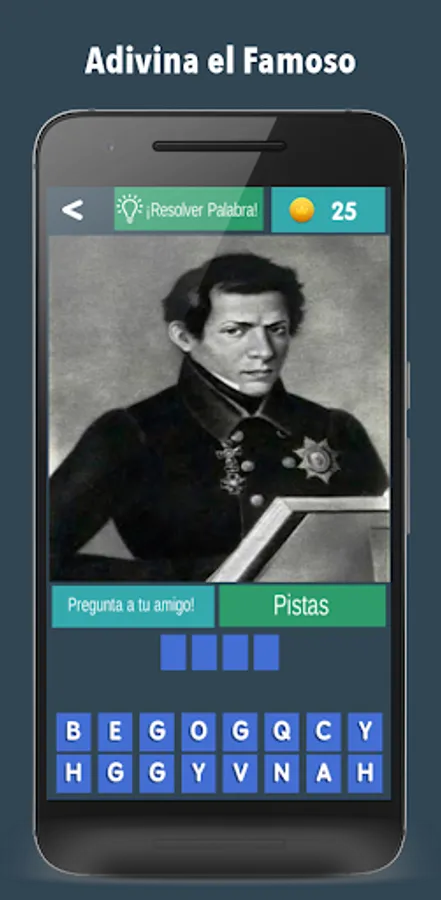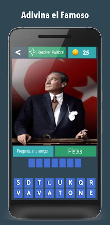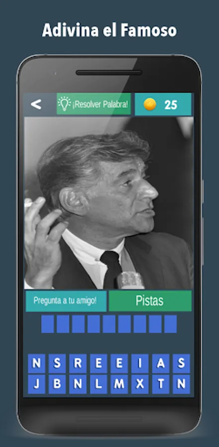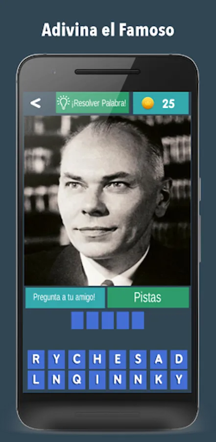 👉The letters of the correct answer appear completely disordered under the photo of the famous person.