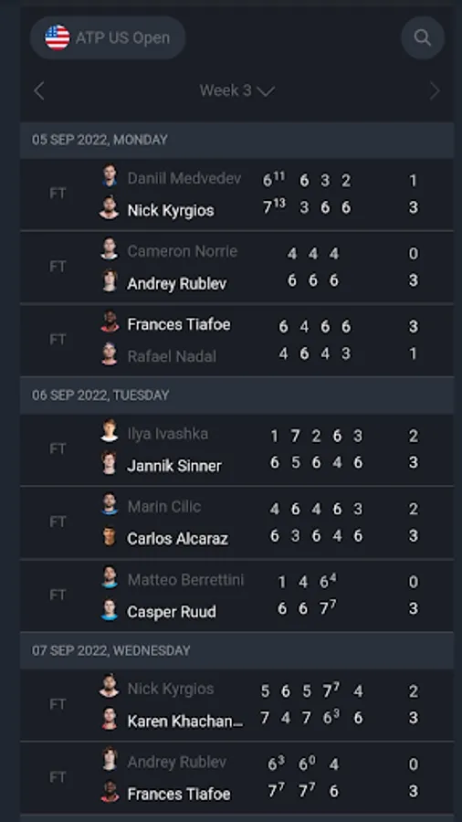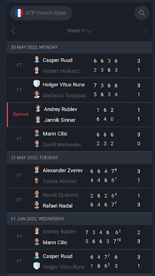Features of the app of ATP live scores - Tennis live :