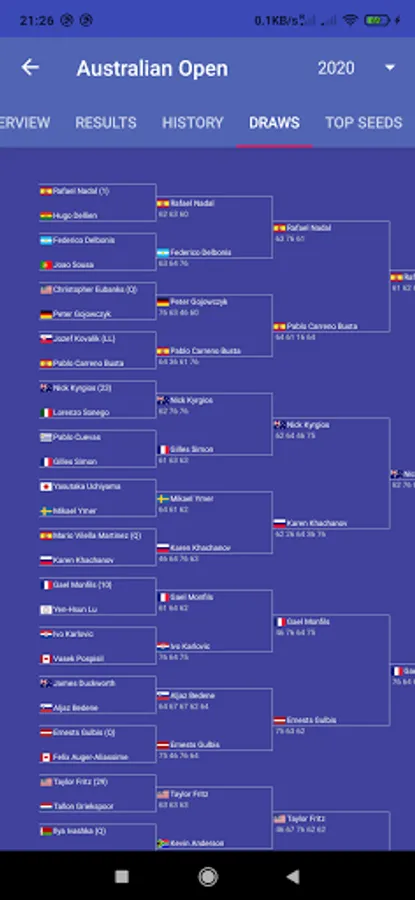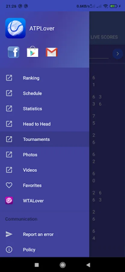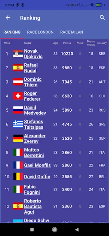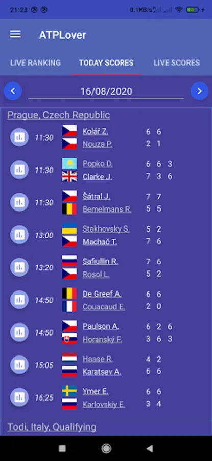 The ATPLover app specializes in ATP Tennis singles (Association of Tennis Professionals).
