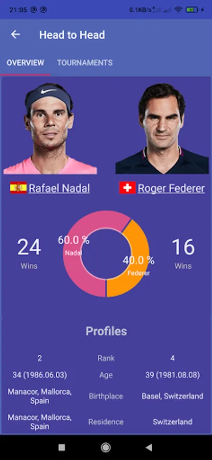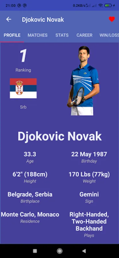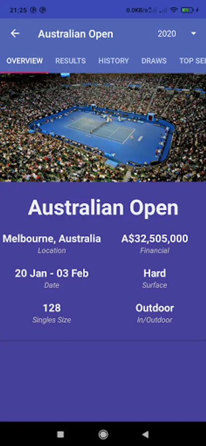 As a tennis fan, I would like an app which combines Tennis matches time schedule, Tournament information with Draws, Statistics, Live Ranking with best case scenario for the players, Live match details and Players profile info with a single click.