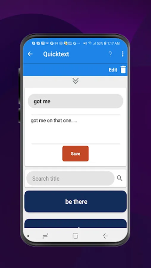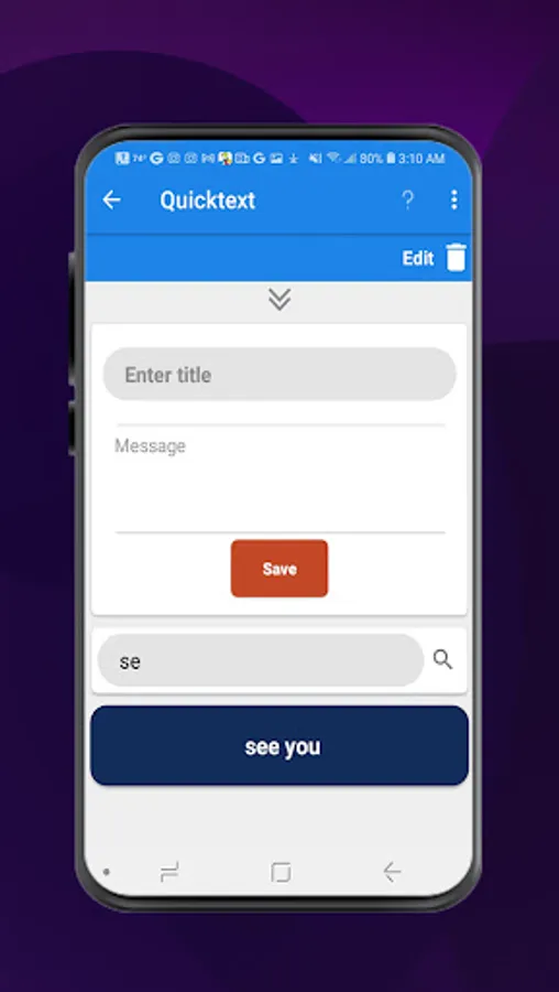 • also, easily access any of your pre-saved messages from the saved message list by using the app's search feature