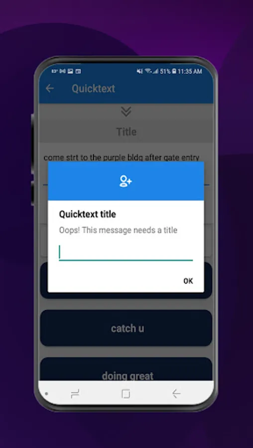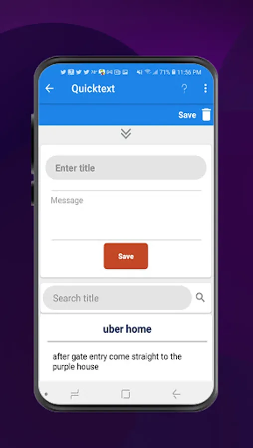 • just navigate to your quicktext page, write a message from your imagination and save for it future use