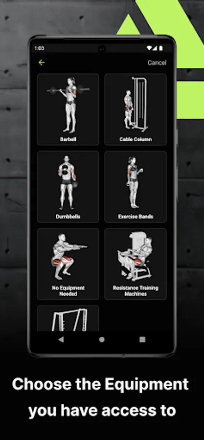 You can also customize your workout by selecting the workout equipment that you have access to. This will allow us to instantly build a personalized workout with only exercises that use your equipment. Whether you have access to a full commercial gym, a home gym with dumbbells and barbells or you just want to do a no equipment workout on the beach, we got you covered!!