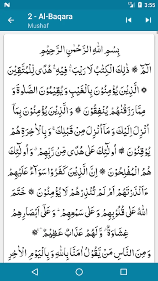 - Mushaf Mode: Recite Quran with Translation (Tarjuma) or Tafseer