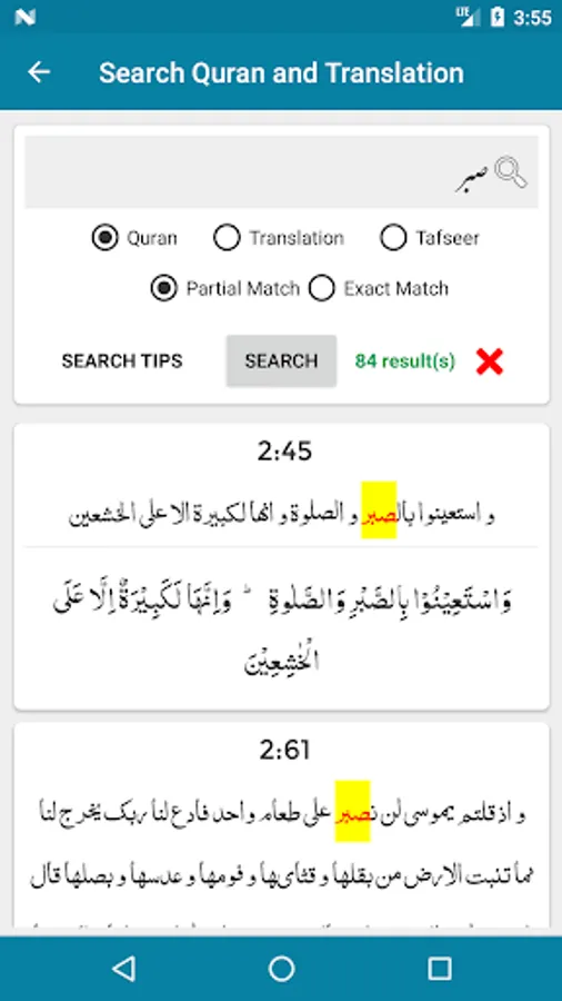 - Advance Search functionality in Quran, Translation (Tarjuma) and Tafseer