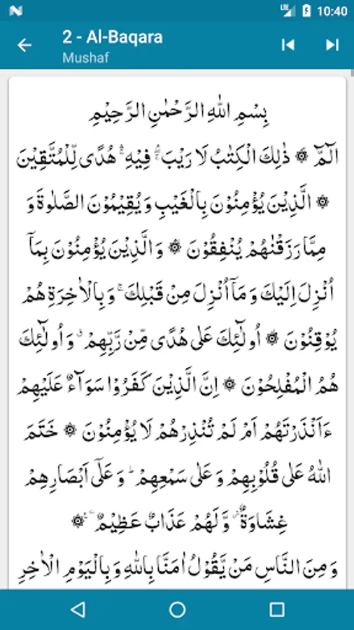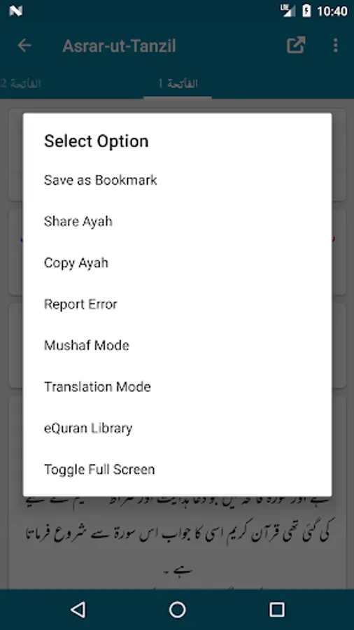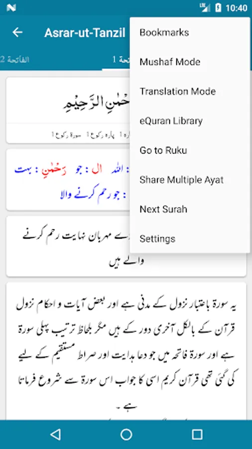 - Mushaf Mode: Recite Quran with Translation (Tarjuma) or Tafseer