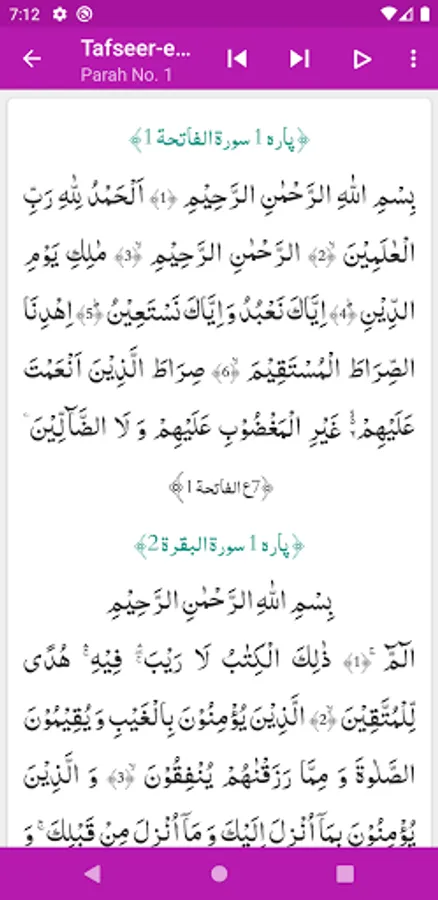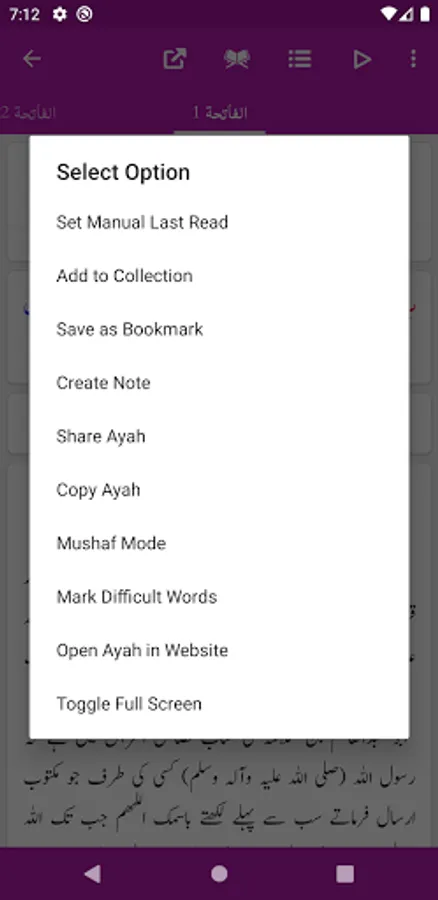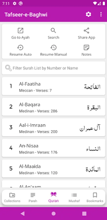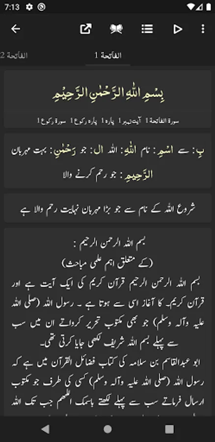 - Mushaf Mode: Recite Quran with Translation (Tarjuma) or Tafseer