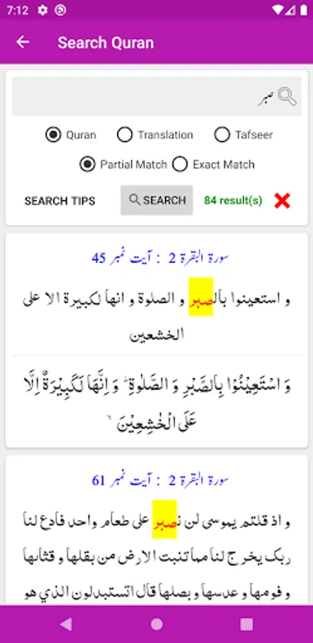 - Advance Search functionality in Quran, Translation (Tarjuma) and Tafseer
