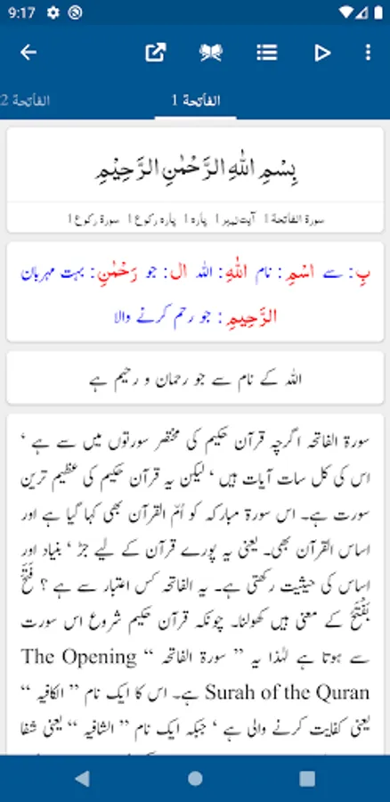 - Ability to show/hide Word by Word, Quran Translation (Tarjuma) and Tafseer