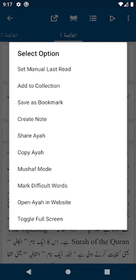 - Share Ayah with or without Quran Translation (Tarjuma) and Tafseer