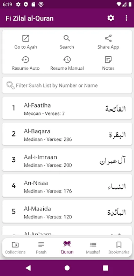 - Mushaf Mode: Recite Quran with Translation (Tarjuma) or Tafseer