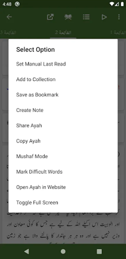 - Share Ayah with or without Quran Translation (Tarjuma) and Tafseer