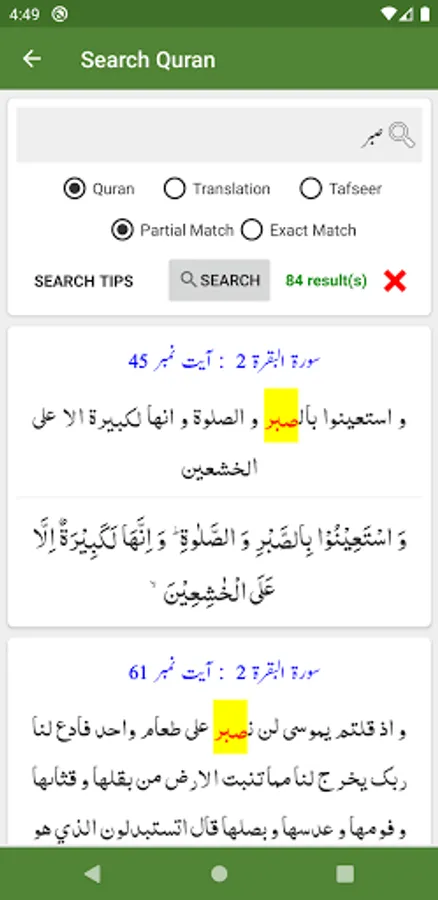 - Advance Search functionality in Quran, Translation (Tarjuma) and Tafseer
