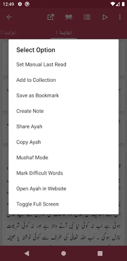 - Share Ayah with or without Quran Translation (Tarjuma) and Tafseer
