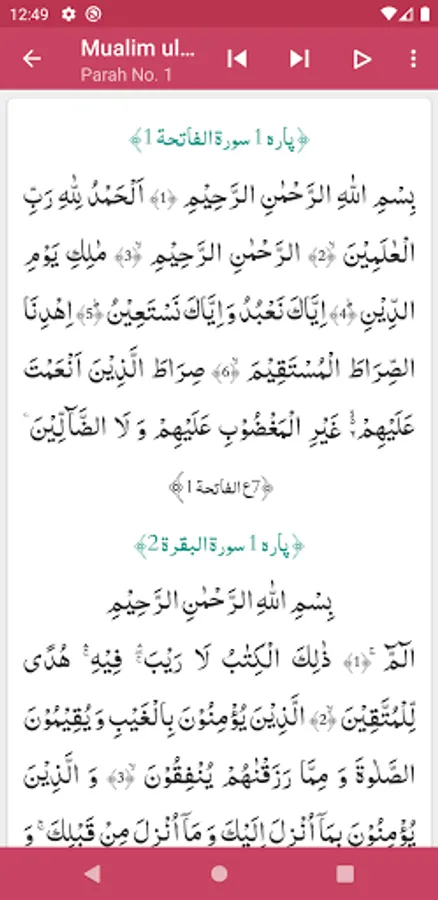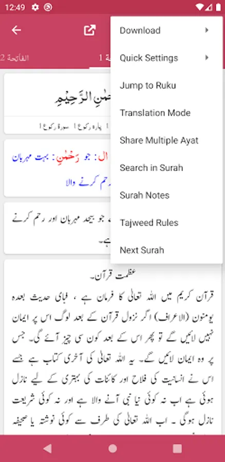 - Mushaf Mode: Recite Quran with Translation (Tarjuma) or Tafseer