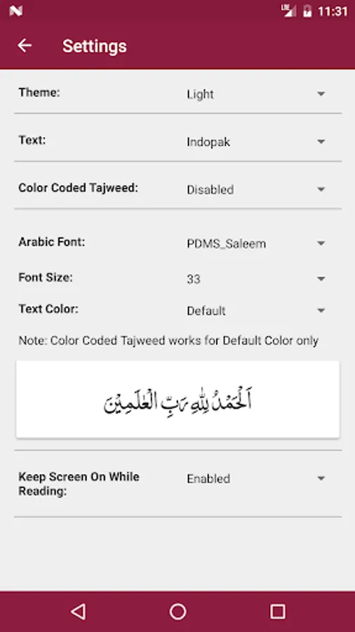 Quran with Color Coded Tajweed in Mushaf style with Indopak and Uthmani Script