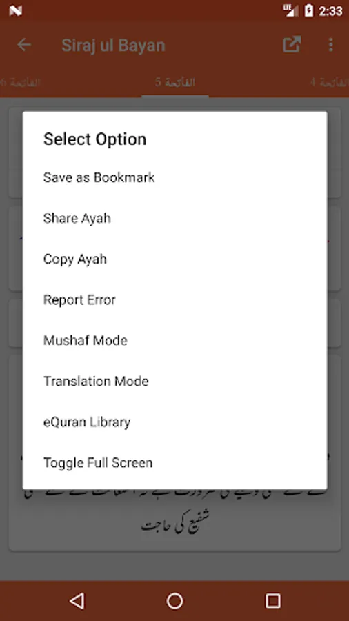 - Share Ayah with or without Quran Translation (Tarjuma) and Tafseer
