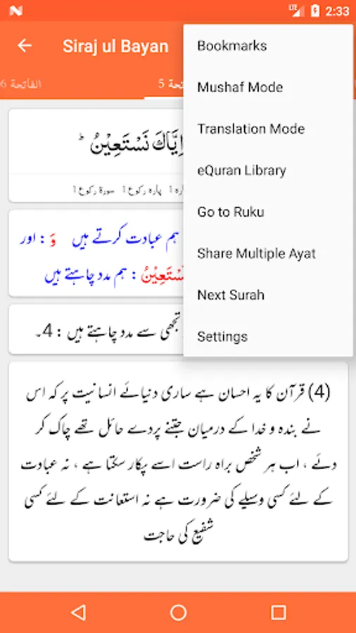 - Mushaf Mode: Recite Quran with Translation (Tarjuma) or Tafseer