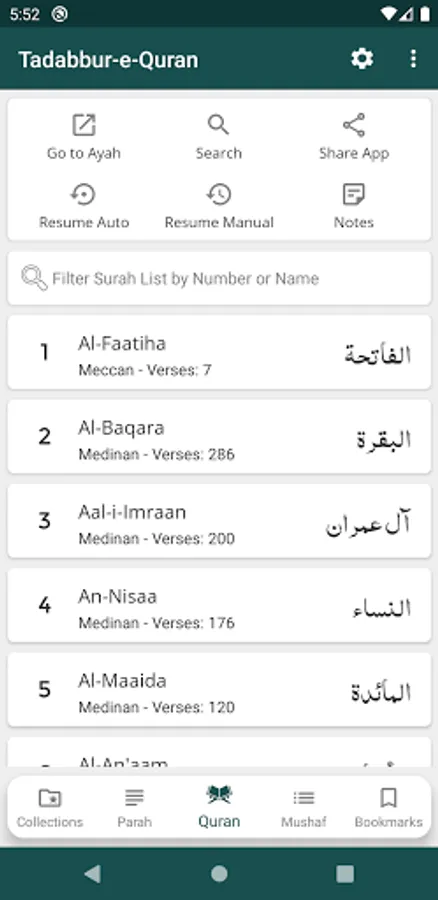 - Mushaf Mode: Recite Quran with Translation (Tarjuma) or Tafseer