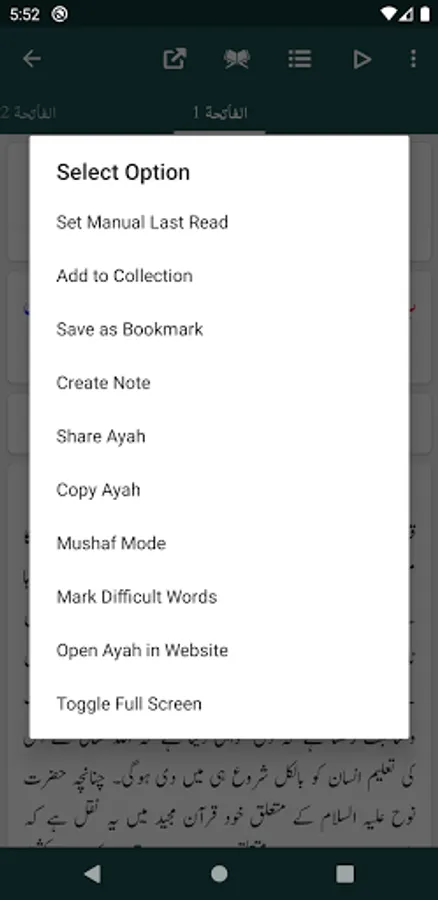 - Share Ayah with or without Quran Translation (Tarjuma) and Tafseer