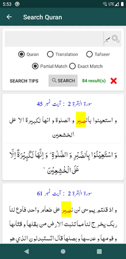- Advance Search functionality in Quran, Translation (Tarjuma) and Tafseer