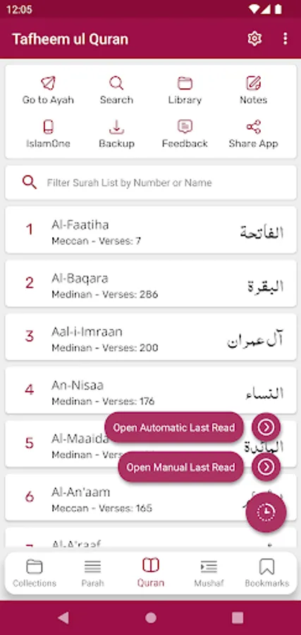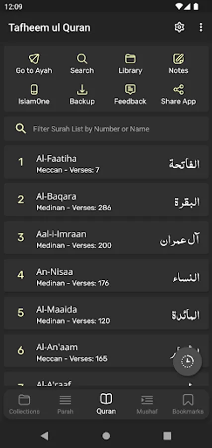 - Mushaf Mode: Recite Quran with Translation (Tarjuma) or Tafseer
