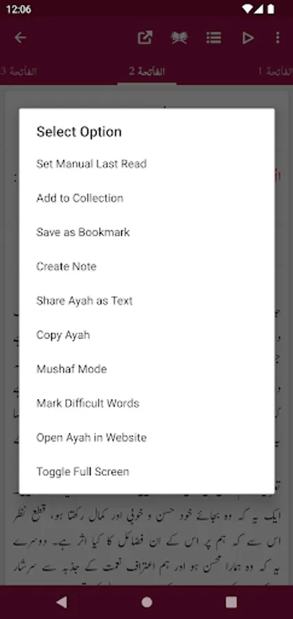 - Share Ayah with or without Quran Translation (Tarjuma) and Tafseer