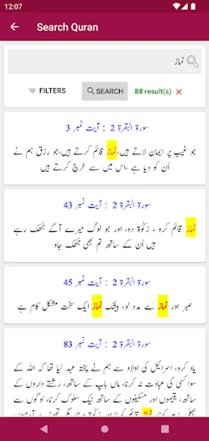 - Advance Search functionality in Quran, Translation (Tarjuma) and Tafseer