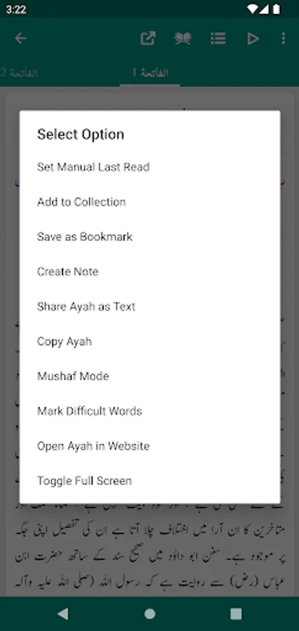 - Share Ayah with or without Quran Translation (Tarjuma) and Tafseer