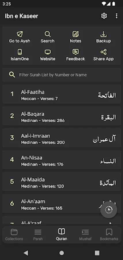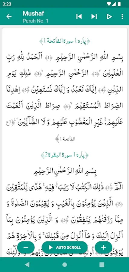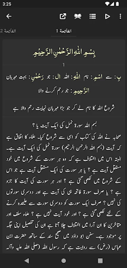 - Mushaf Mode: Recite Quran with Translation (Tarjuma) or Tafseer