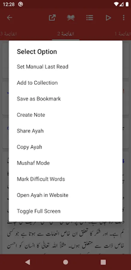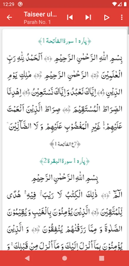 - Mushaf Mode: Recite Quran with Translation (Tarjuma) or Tafseer