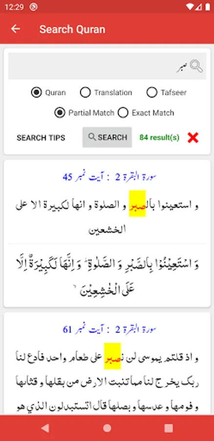 - Advance Search functionality in Quran, Translation (Tarjuma) and Tafseer