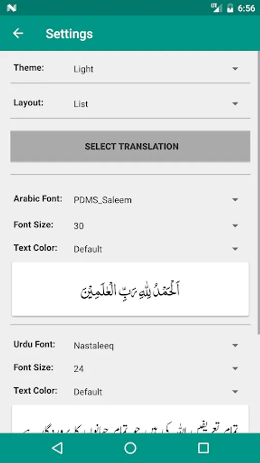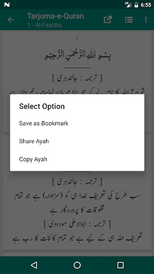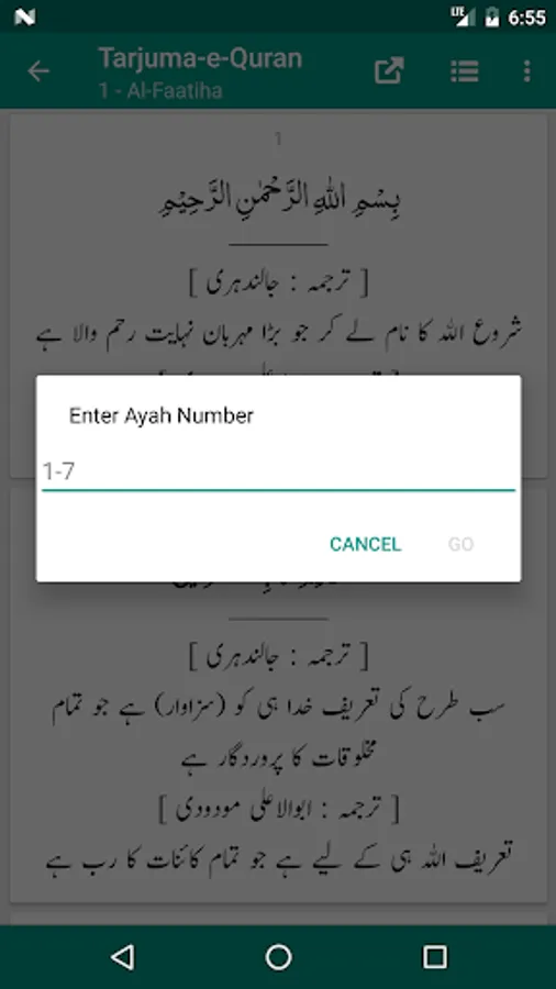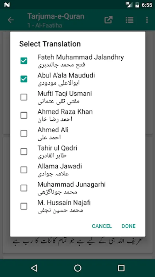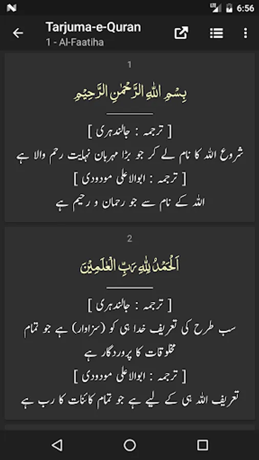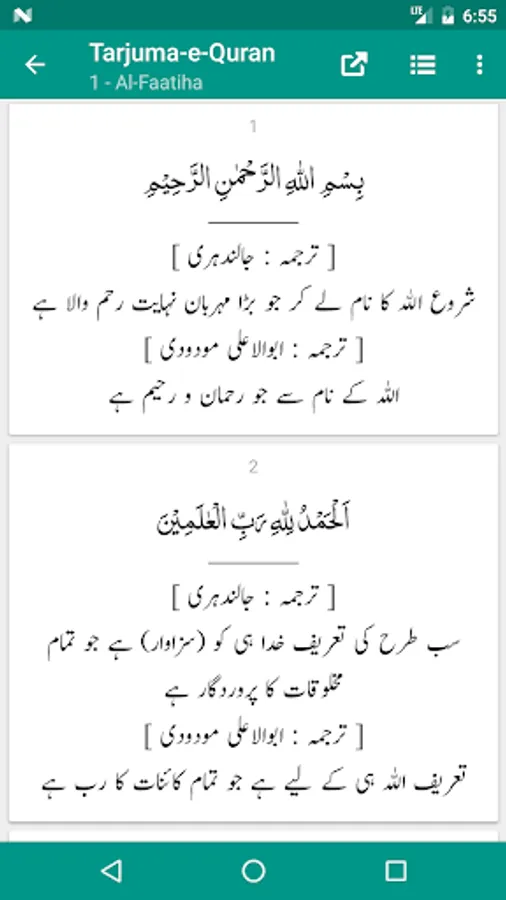 The app features Nine (9) Urdu Translations of Quran written by following scholars: