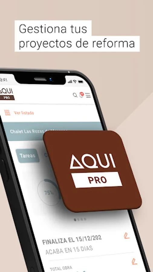 AQUI PRO is a software designed thinking solely and exclusively about the reforms and rehabilitation of homes and buildings. AQUI PRO allows you to manage a reform business digitally and with a multitude of advantages. The objective is to offer you more time to manage and control your works, more capacity to carry out reforms, more visibility between you and your clients and greater profitability at the end of each project.