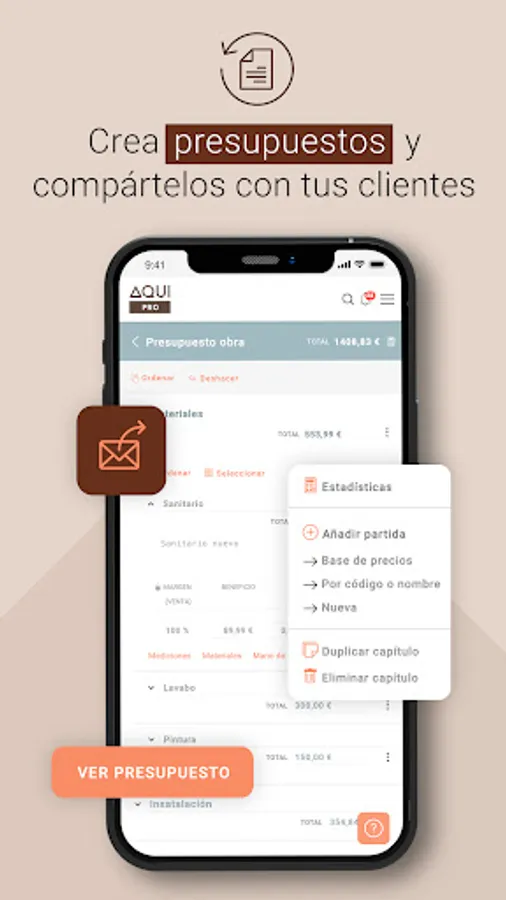 - Carry out agile and on-the-spot budgeting, with previous estimated budgets, being able to add the products directly to your budget
