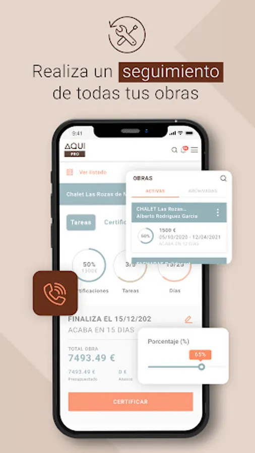 With the reporting and work monitoring structure offered by AQUI PRO, you will be able to maintain active communication in real time with all your clients and monitor the work and budget.