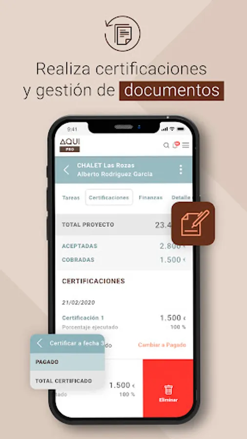 AQUI PRO is a software designed thinking solely and exclusively in the remodeling and rehabilitation of homes and buildings. AQUI PRO allows you to manage a remodeling business digitally and with a multitude of advantages. The objective is to offer you more time to manage and control your works, more capacity to carry out remodeling, more visibility between you and your clients and greater profitability at the end of each project.