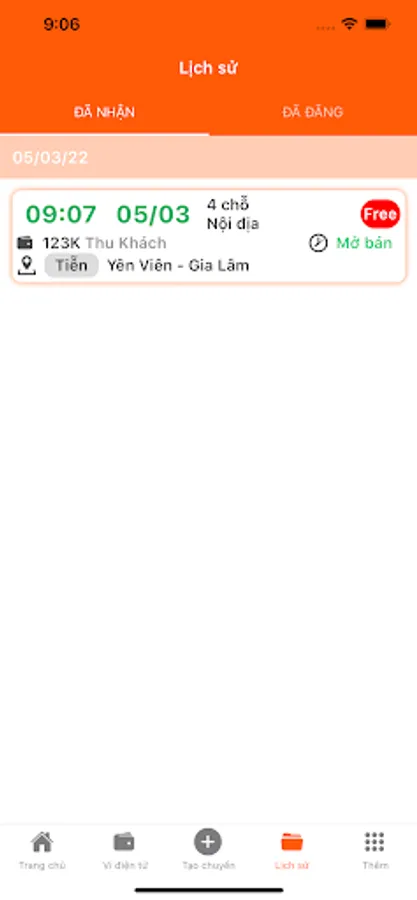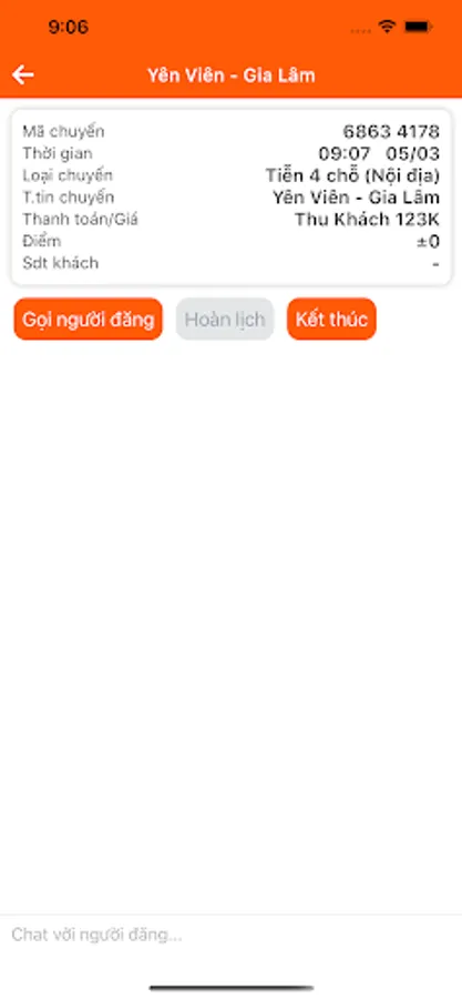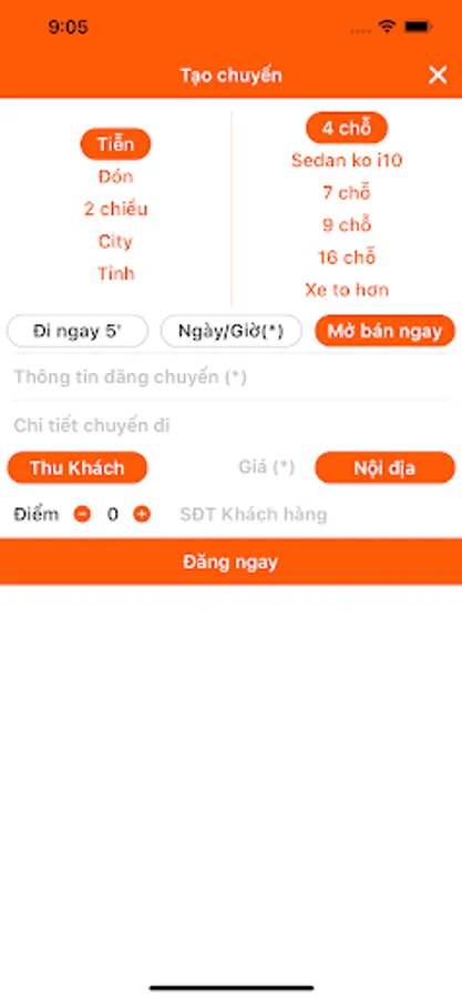 Application for booking a car, exchanging Noi Bai trips, going to the province